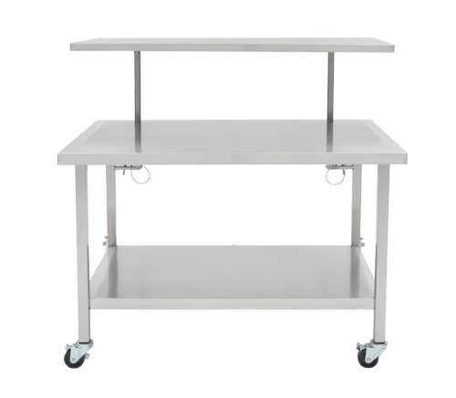 Our specialty back table is designed to provide additional room for extensive surgeries which require a wide array of equipment and instruments. Height adjustment from 46-49" is achievable in either the pneumatic assist or manual model. The top tier 'hide-away' shelf is angled for easier instrument viewing and holds multiple trays. Tables have sanitary closed tops which help prevent bacterial build up. Sealed reinforcing channels provide rigidity and durability.