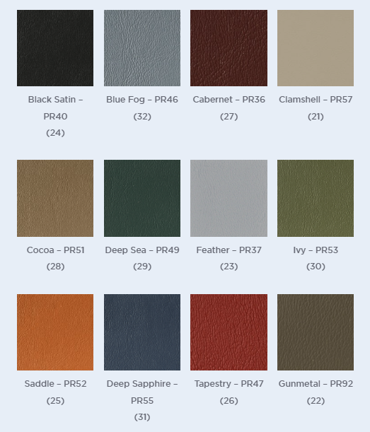 12 standard upholstery color options