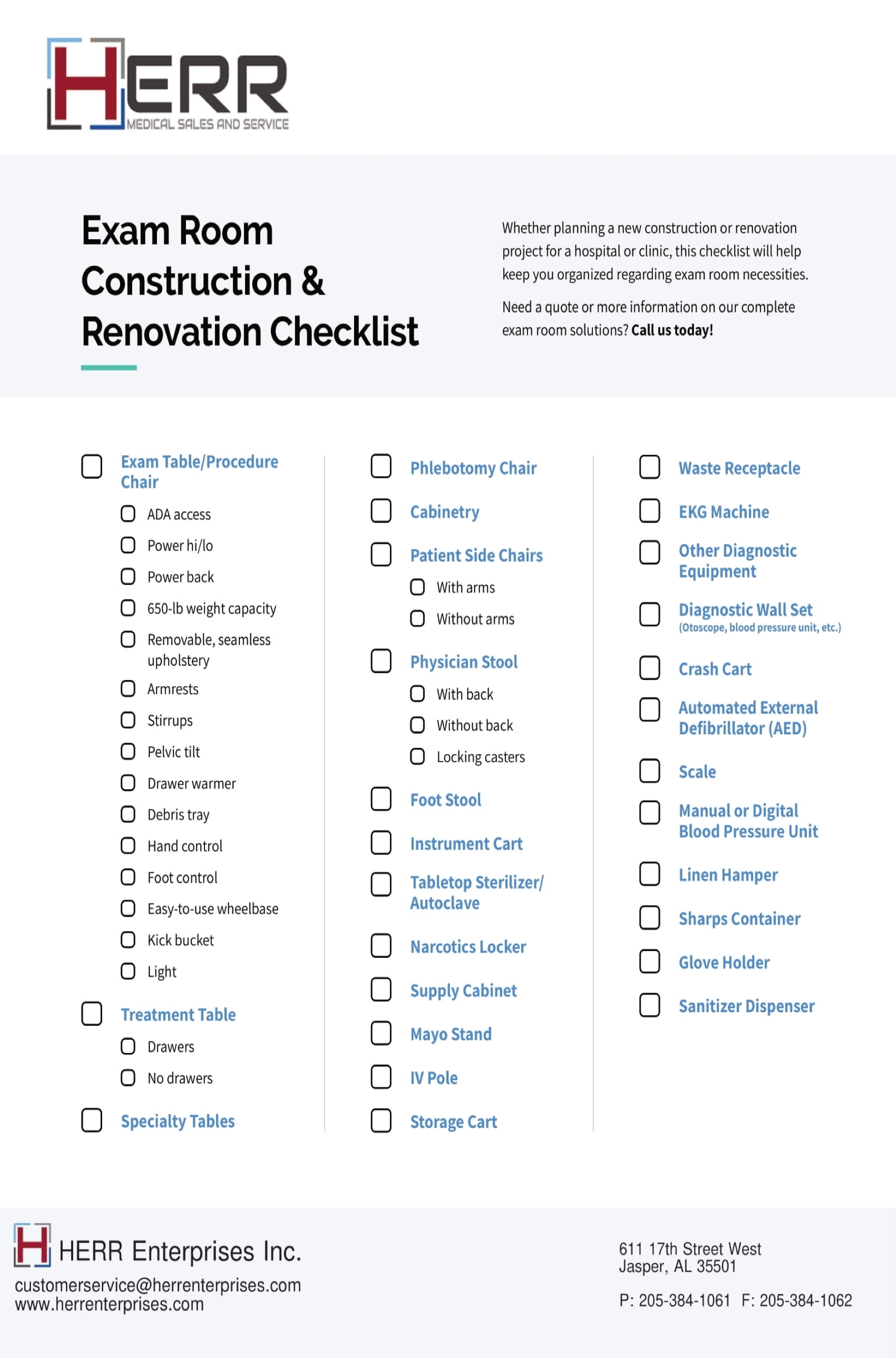Whether planning a new construction or renovation project for a hospital or clinic, this checklist will help keep you organized regarding exam room necessities.