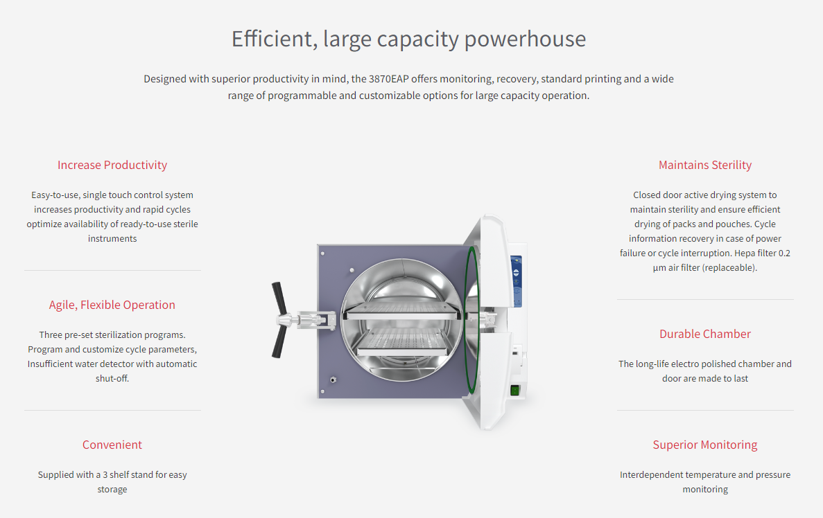The capacity to meet the most demanding offices, The 3870EAP accommodates longer instruments or a large number of small instruments.