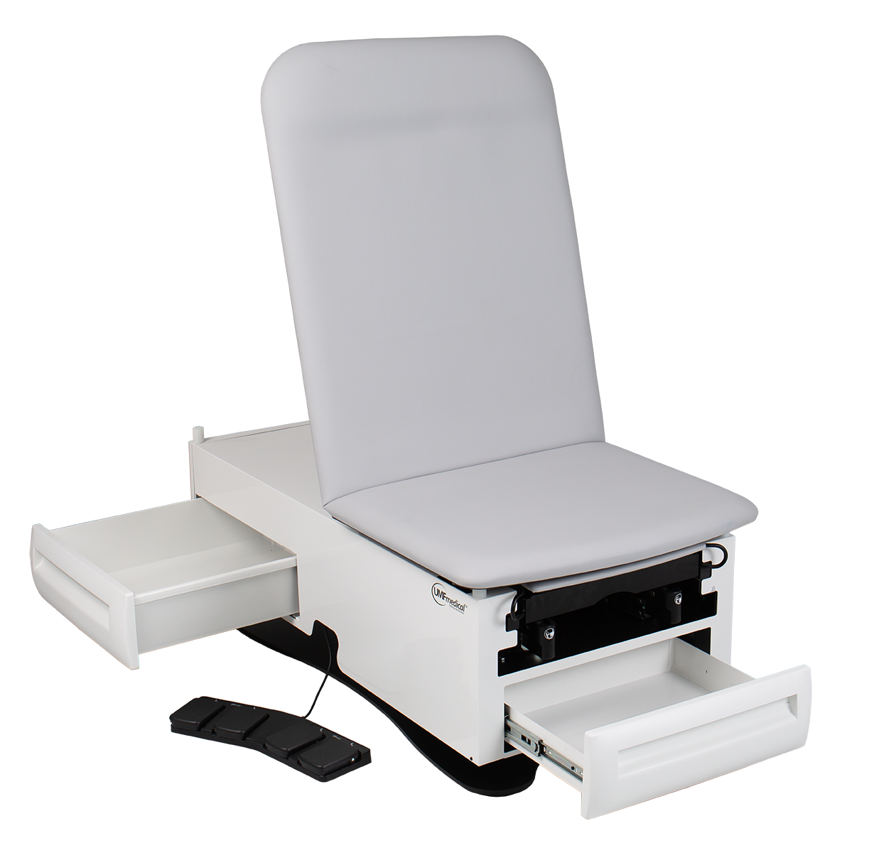 The OneTouch WheelBase® System from UMF Medical makes moving our ProGlide™ Series of products as easy as pushing a pedal. The integrated central-locking wheelbase with an intuitive foot pedal enables staff to move the equipment easily and quickly for cleaning, then lock it solidly into place for exams.
